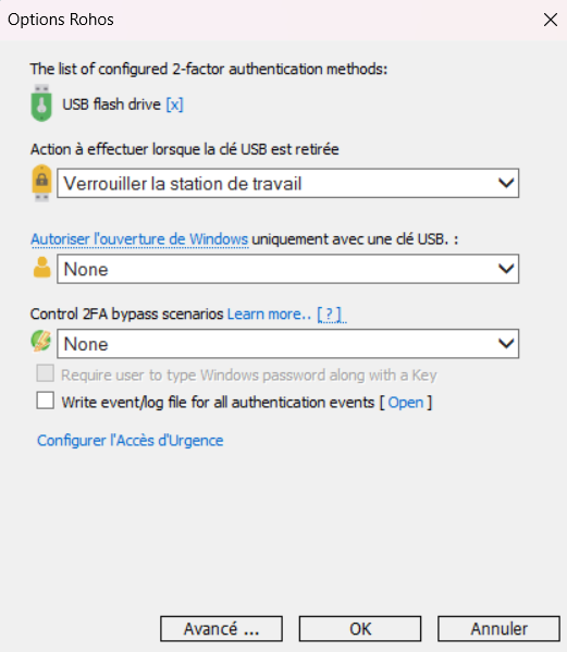 - Sécurisation supplémentaire : Il est possible de configurer un mot de passe de secours, au cas où la clé USB serait perdue ou endommagée.